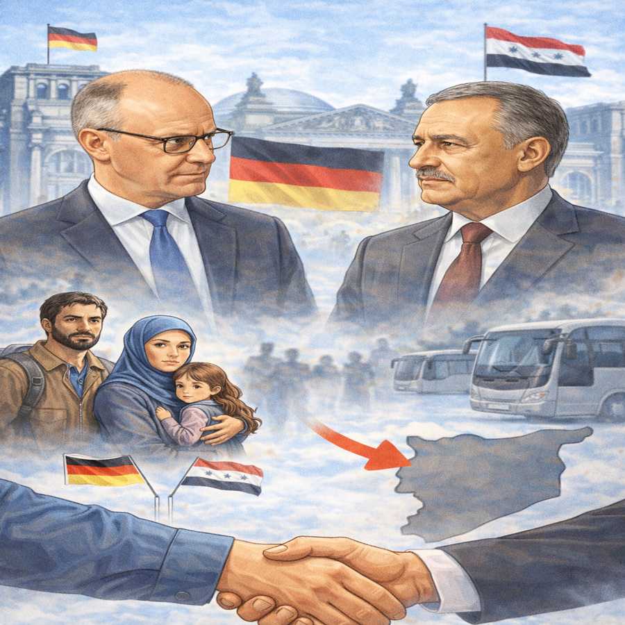 في الأيام الأخيرة ظهر خبر مهم في ألمانيا يتعلق بالمهاجرين السوريين، بعد لقاء جمع المستشار الألماني الجديد Friedrich Merz مع الرئيس السوري الانتقالي Ahmed al-Scharaa في برلين بتاريخ 30.03.2026. حسب التصريحات الرسمية، تحدث المستشار الألماني عن هدف يتمثل في تشجيع عودة نسبة كبيرة من السوريين المو